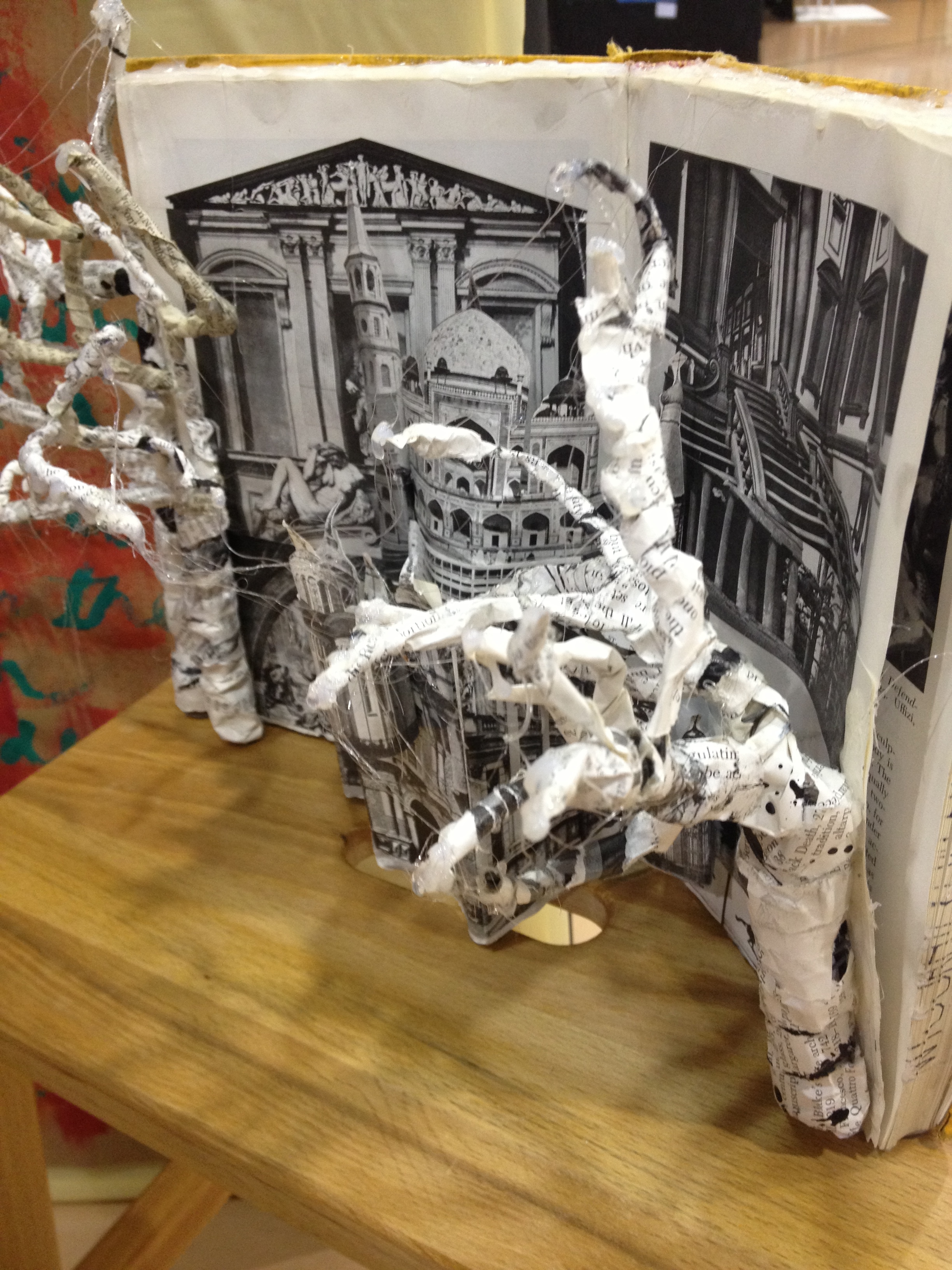 I had the chance to check out the art show tonight; I encourage you all to do the same! The level of work there is phenomenal. Here are some pictures to give you a little preview of what to expect. Let me say that none of my pictures do these pieces justice, and there’s so much other great work that I didn’t have a chance to photograph. (Click on the pictures to enlarge.)